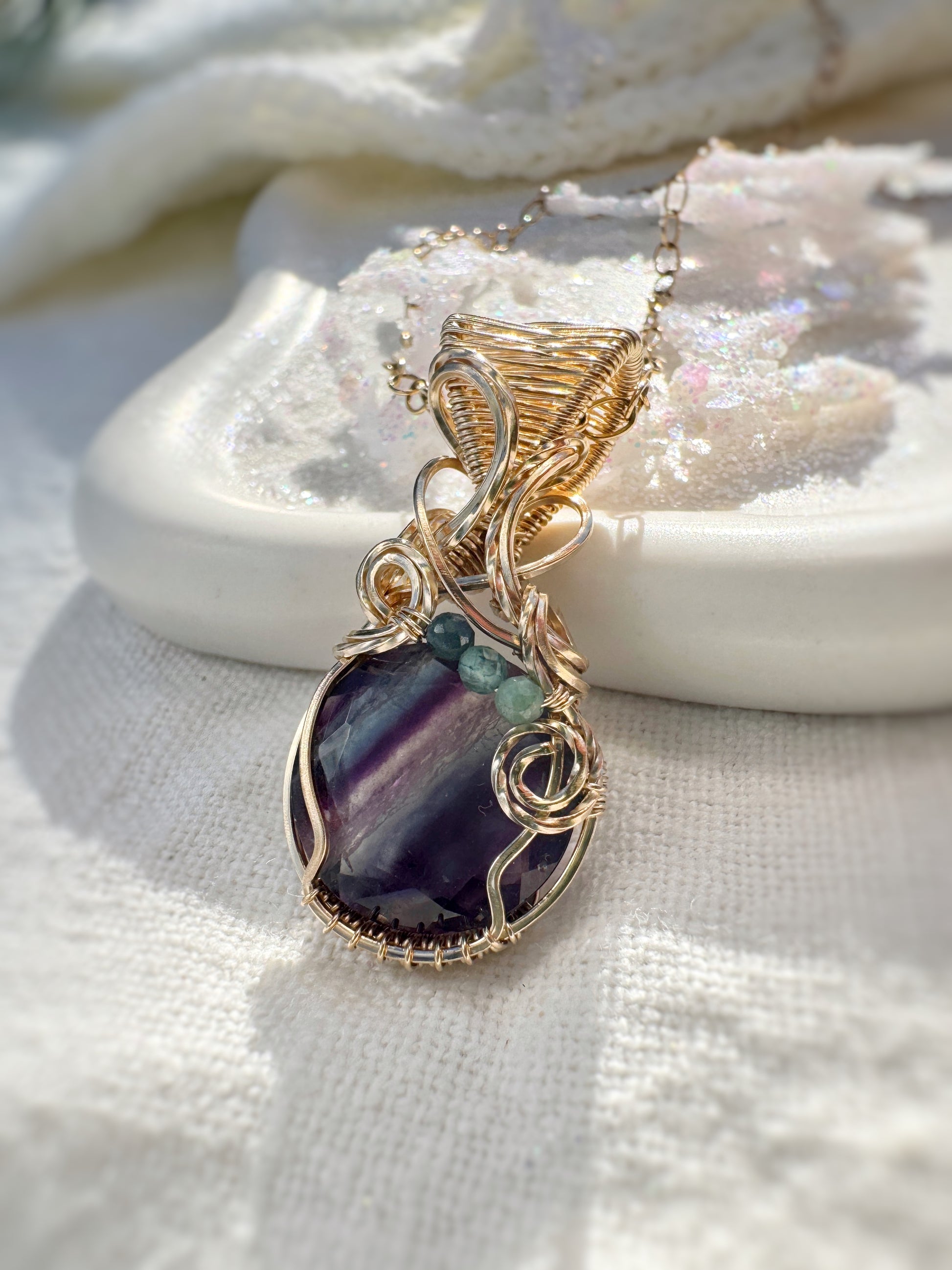 Fluorite & Blue/Green Tourmaline Necklace in 14k Gold Filled
