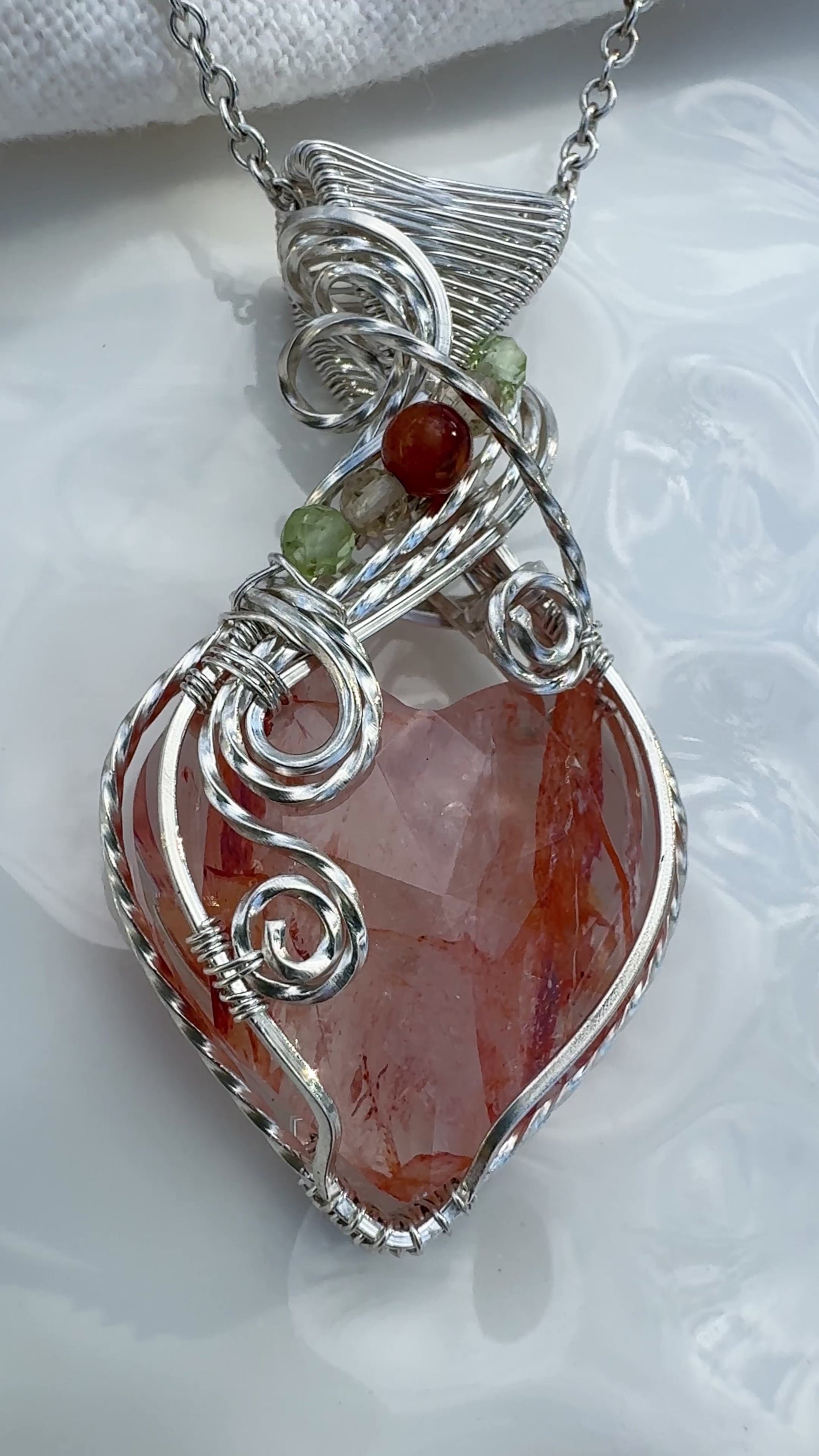 Hematoid Quartz, Amber, Peridot & Fluorite Necklace in Argentium Silver