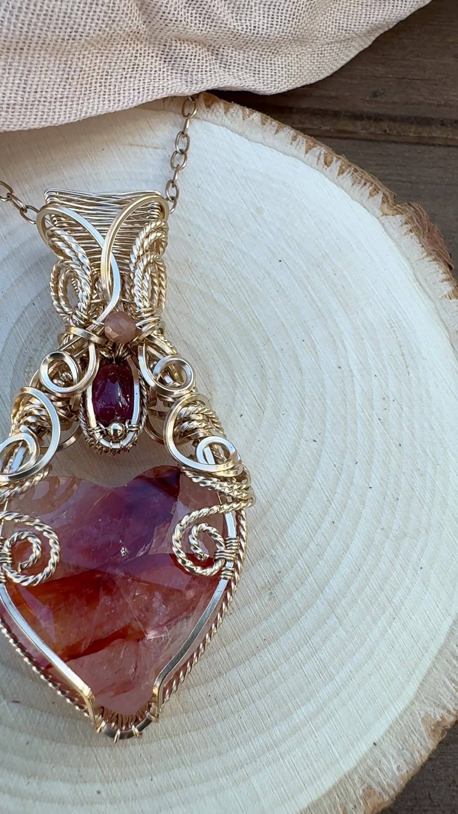 Hematoid Quartz, Pink Tourmaline & Sunstone-Moonstone Necklace in 14k Gold Filled Wire