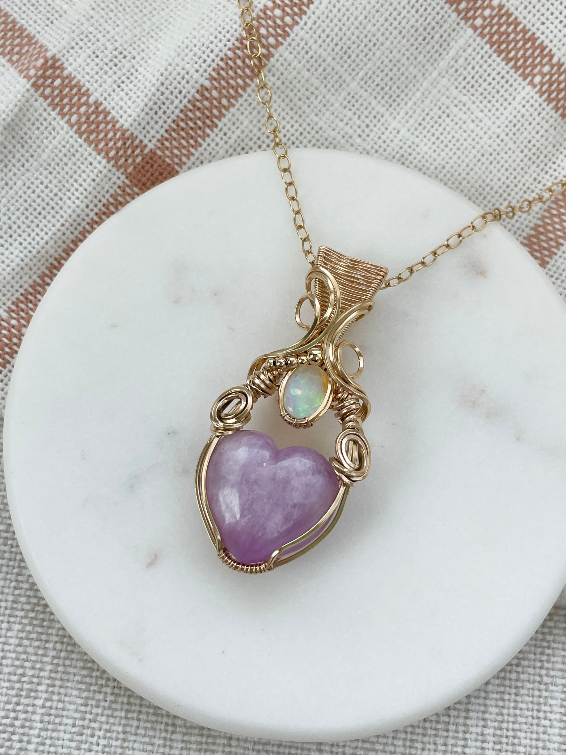 Kunzite Heart & Opal Necklace in 14k Gold Filled