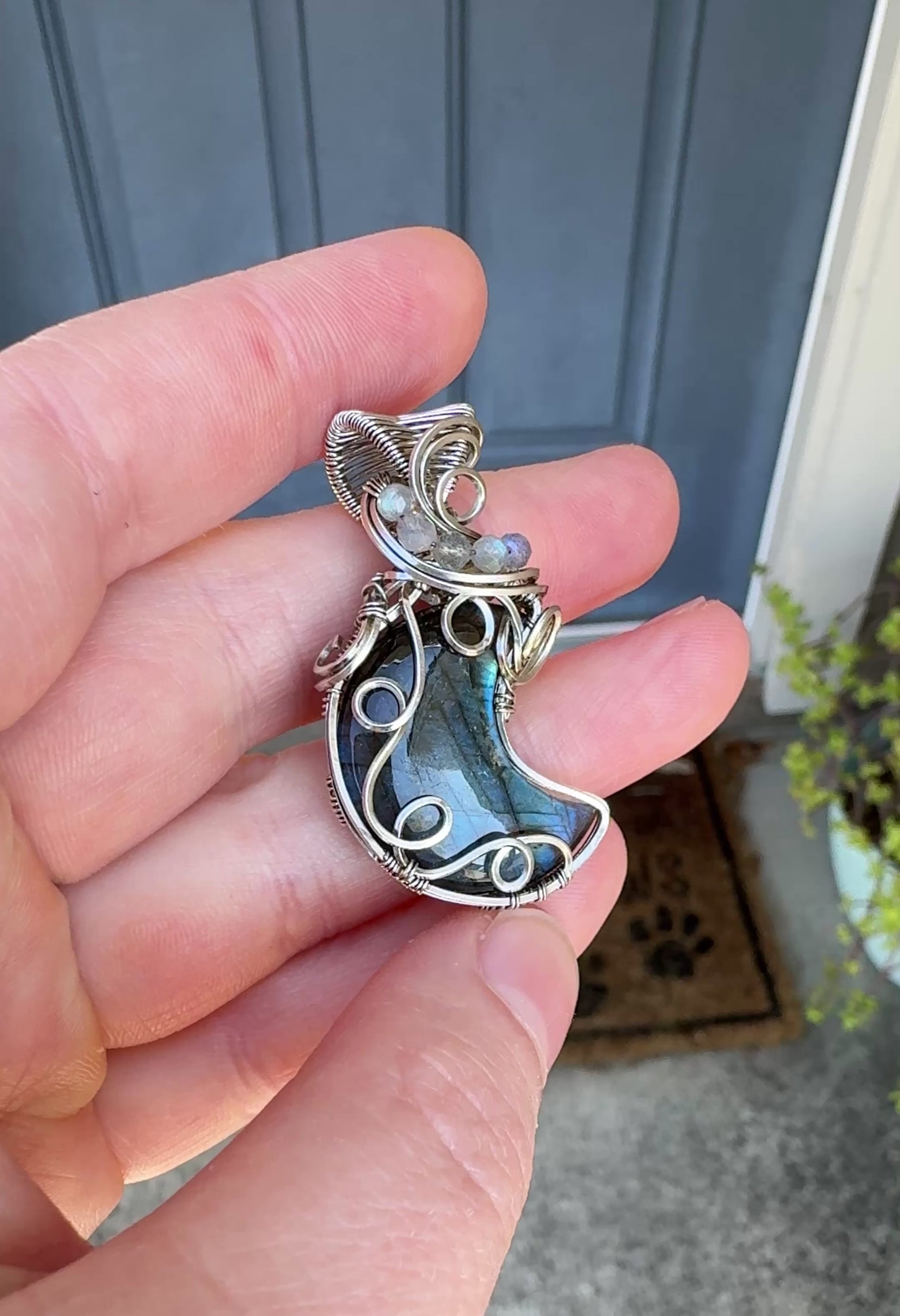 Labradorite Crescent Moon Pendant in Argentium Silver