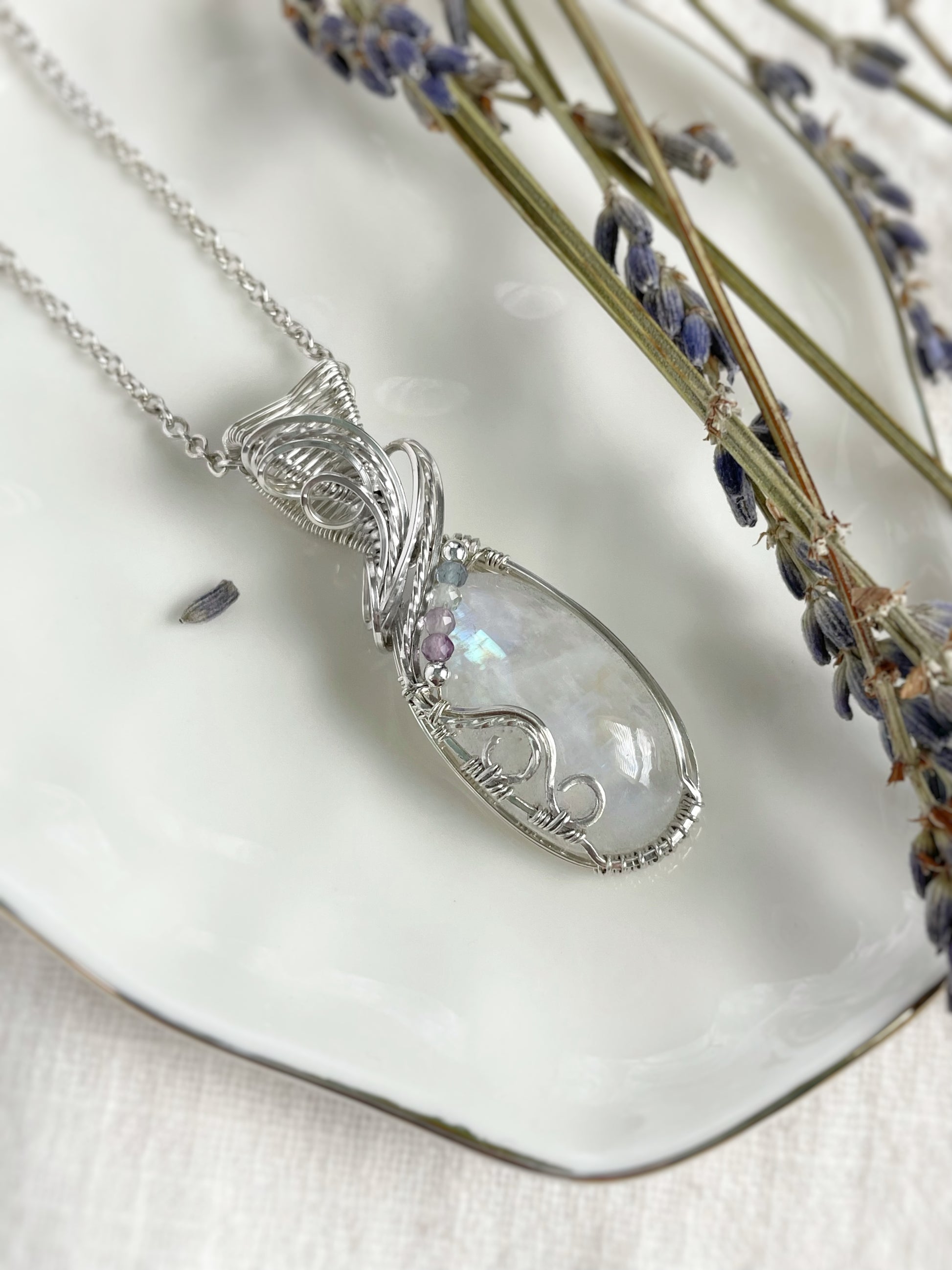 Moonstone & Fluorite Necklace in 0.925 Sterling Silver