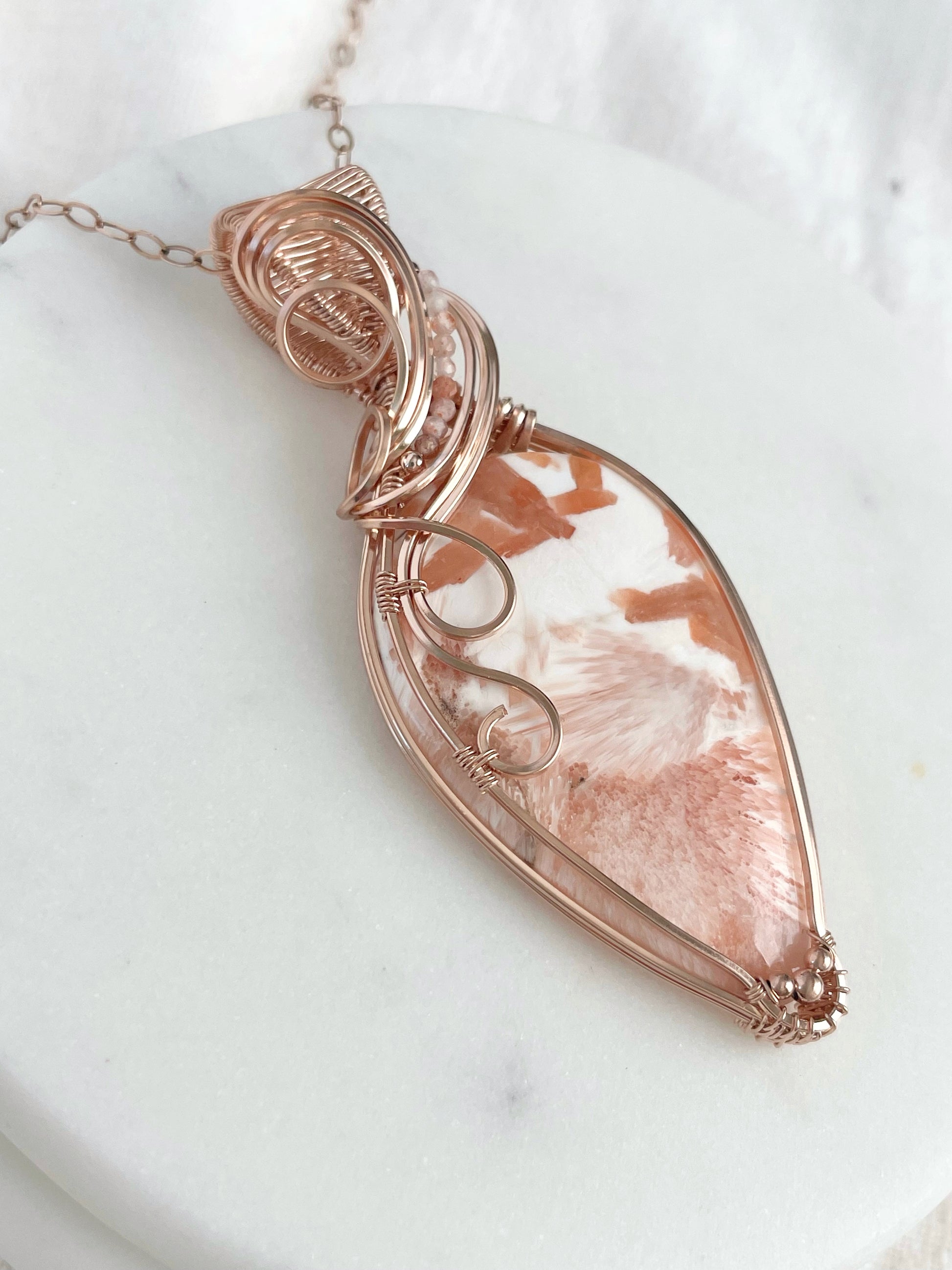 Pink/Peach Scolecite & Sunstone Necklace in 14k Rose Gold Filled