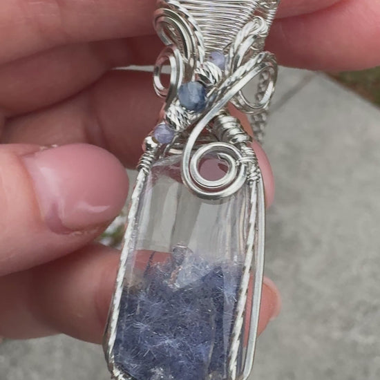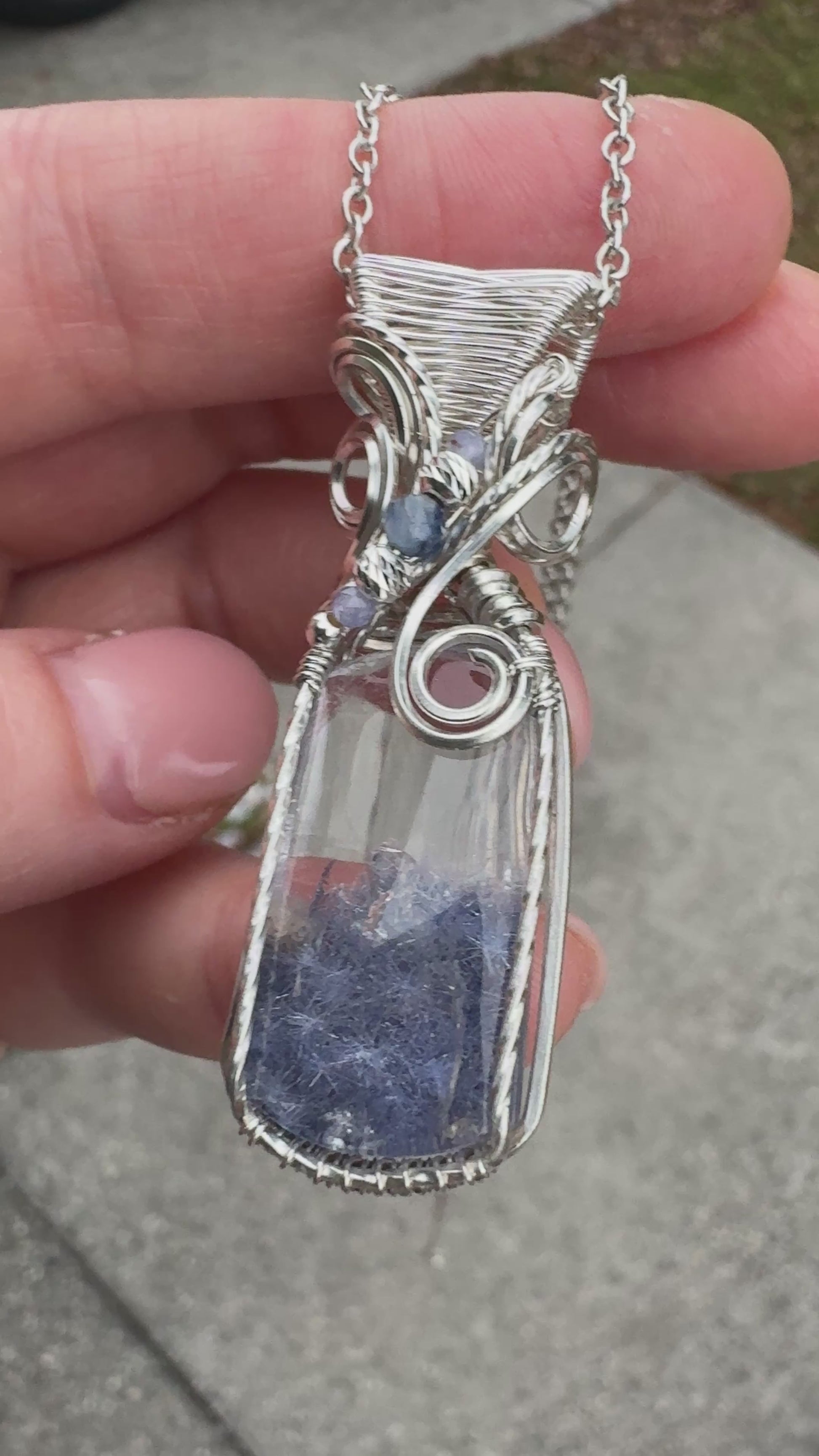 Rare Dumortierite in Clear Quartz, Tanzanite & Blue Kyanite Necklace