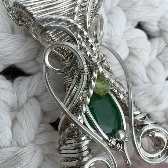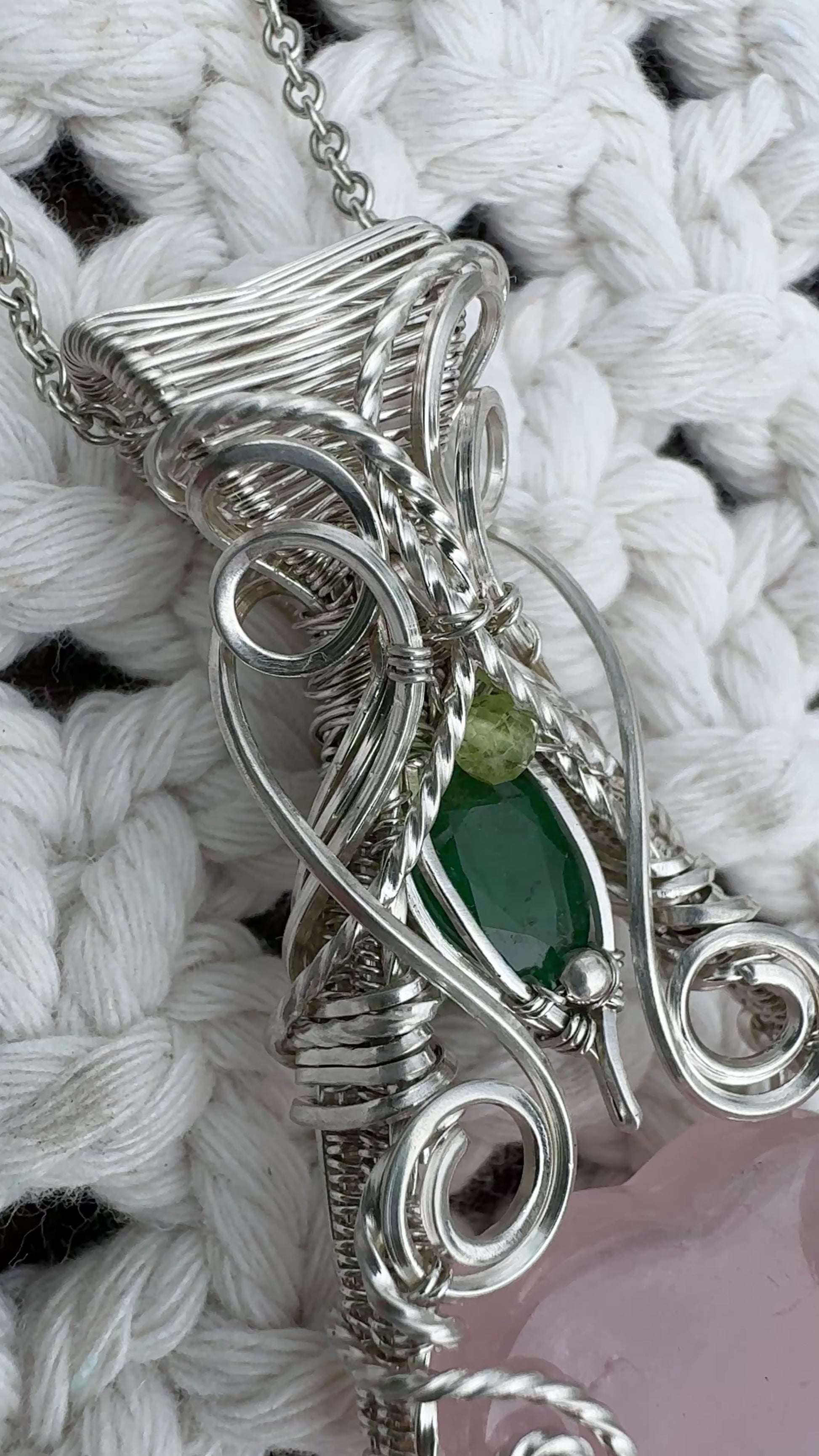 Rose Quartz Heart, Peridot & Emerald (from Sakota Mines) Necklace in Argentium Silver