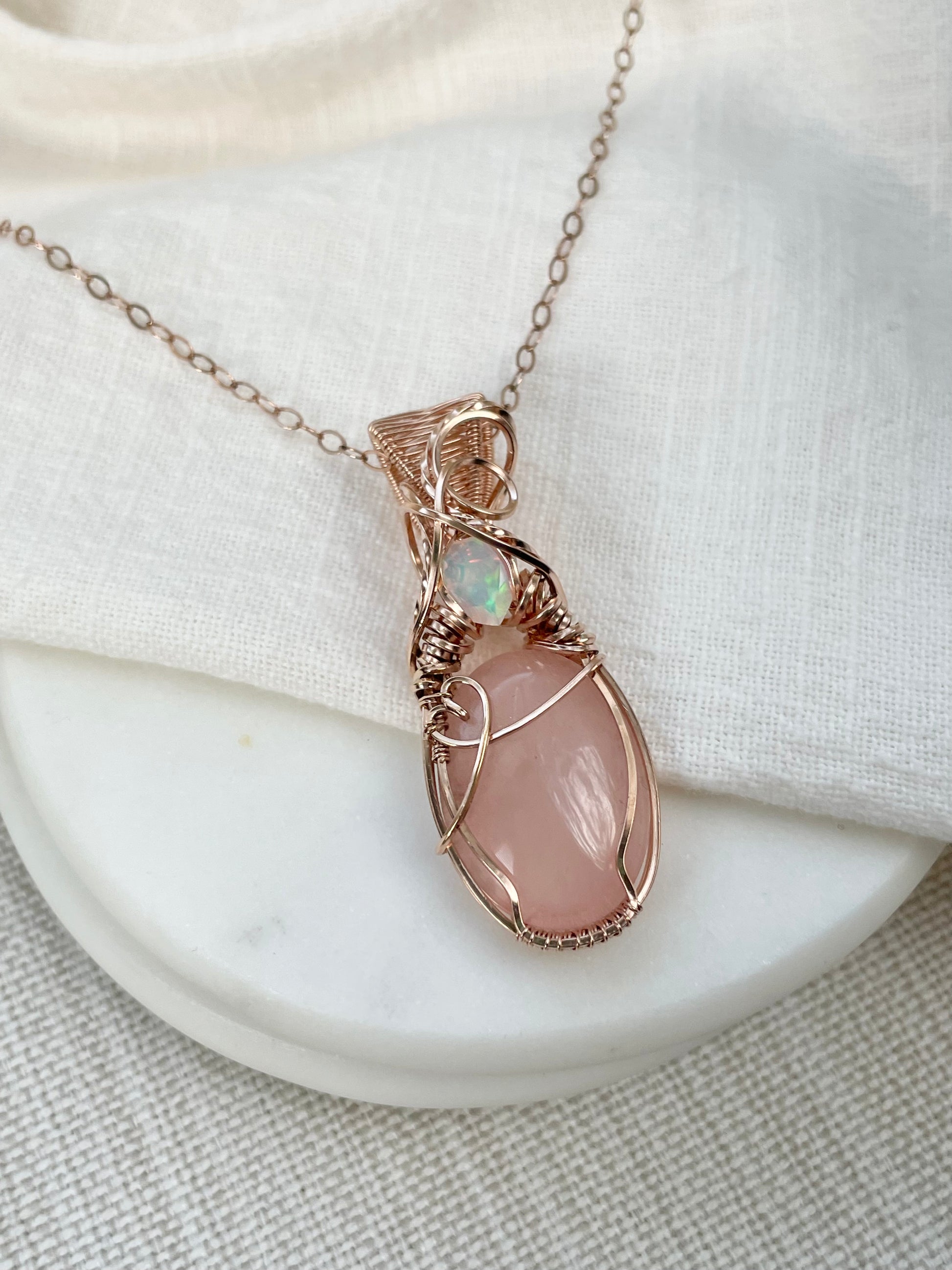 Rose Quartz & Opal Necklace in 14k Rose Gold Filled