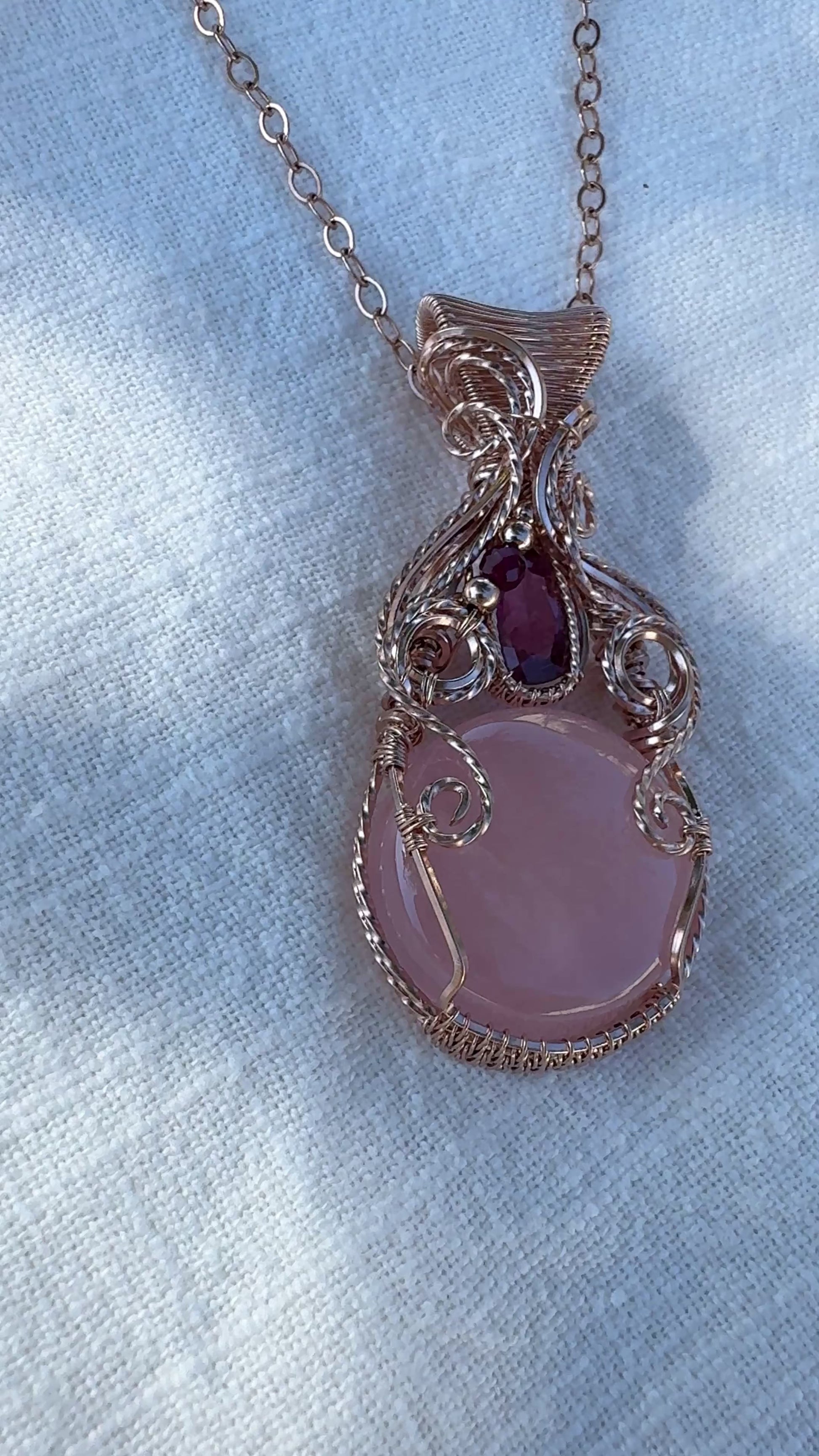 Rose Quartz, Pink Tourmaline & Rubellite Necklace in 14k Rose Gold Filled