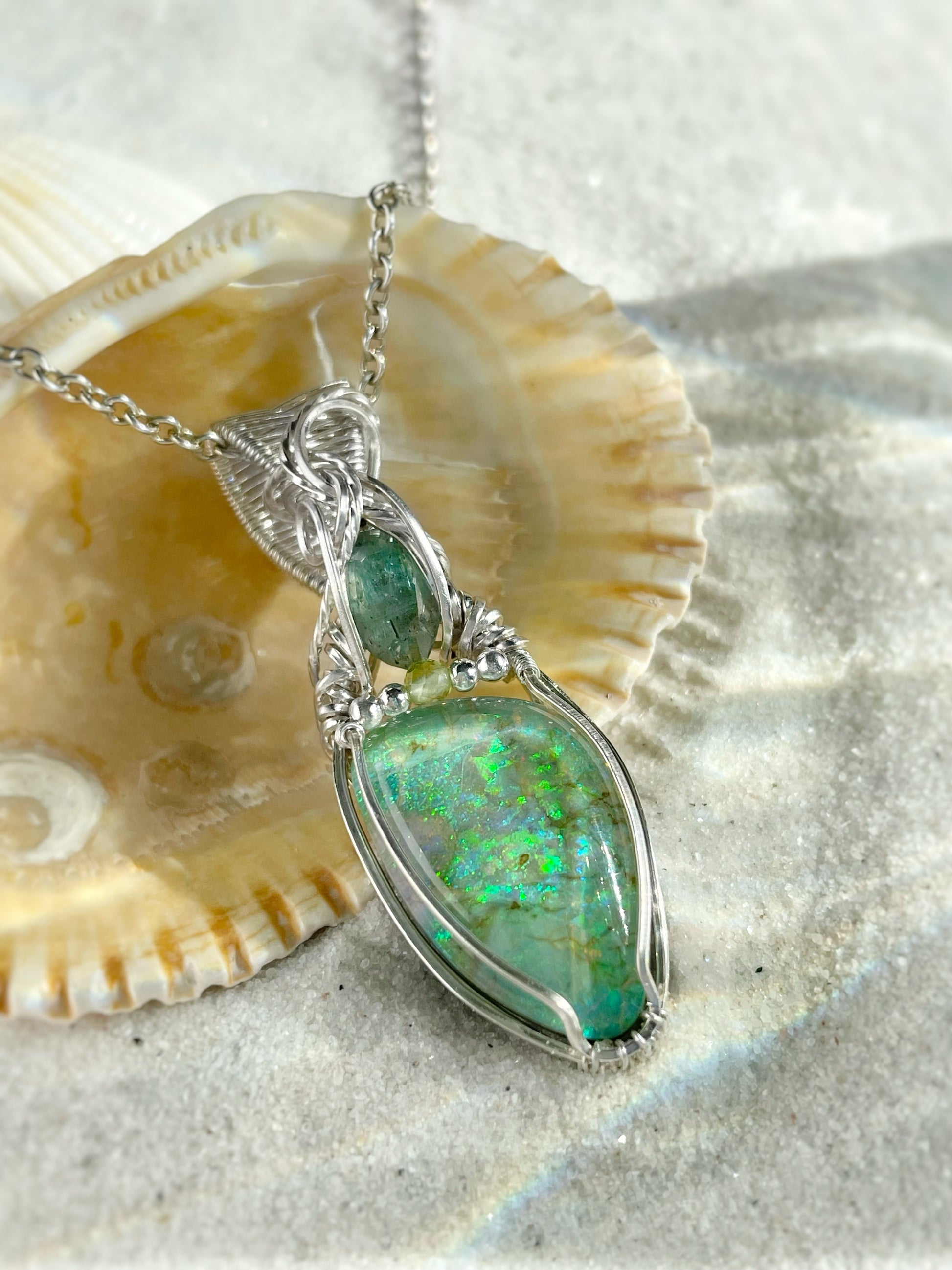 Sterling Monarch Opal ( Lab Created), Green Kyanite & Peridot Necklace in 0.925 Sterling Silver