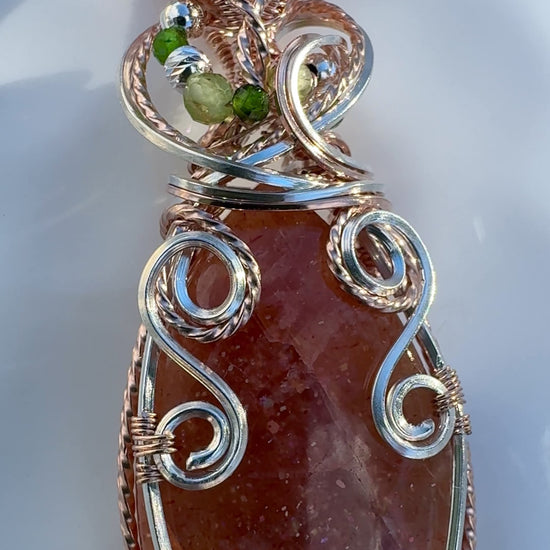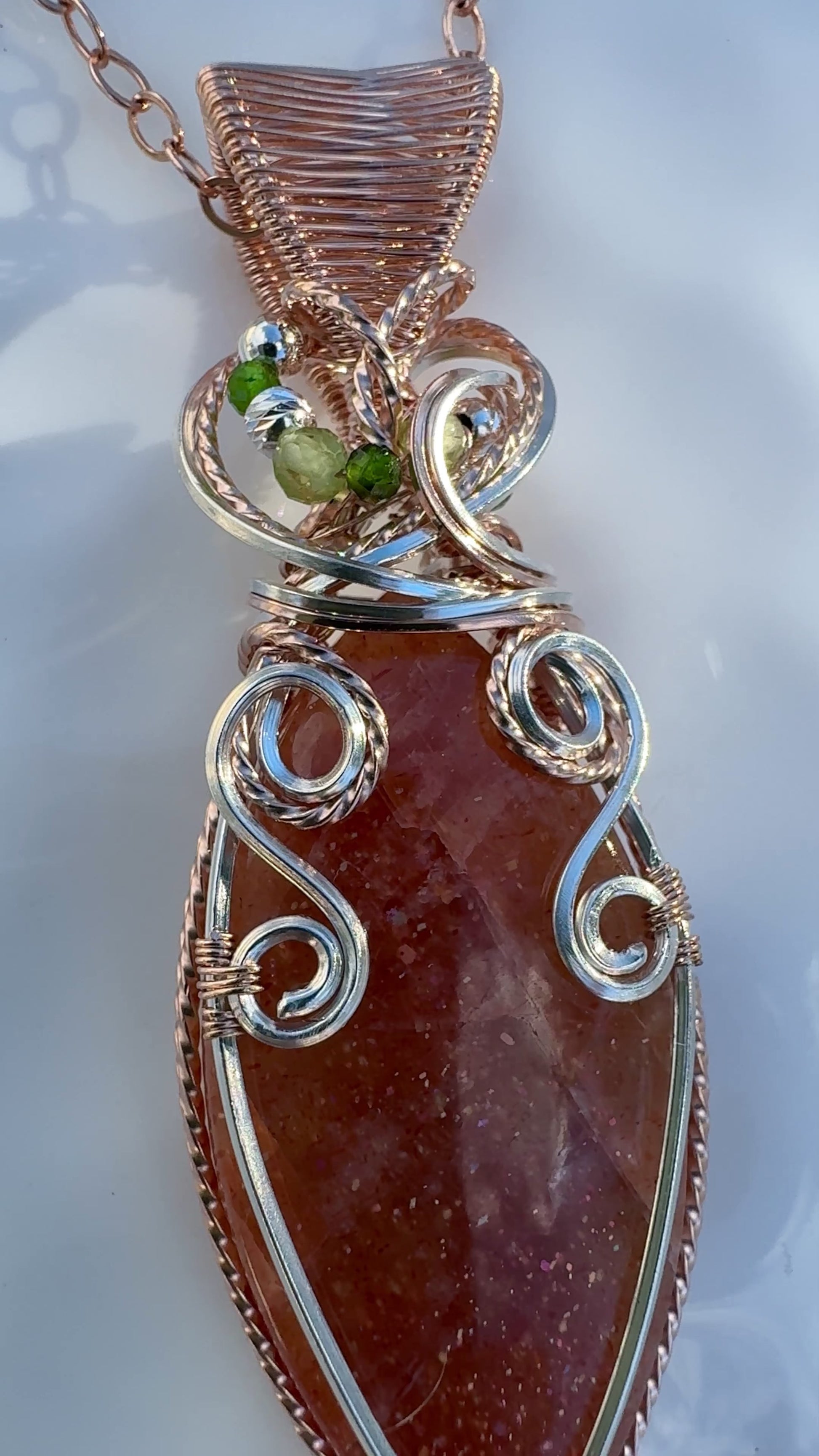 Sunstone, Chrome Diopside & Peridot Necklace in 14k Rose Gold Filled & Argentium Silver